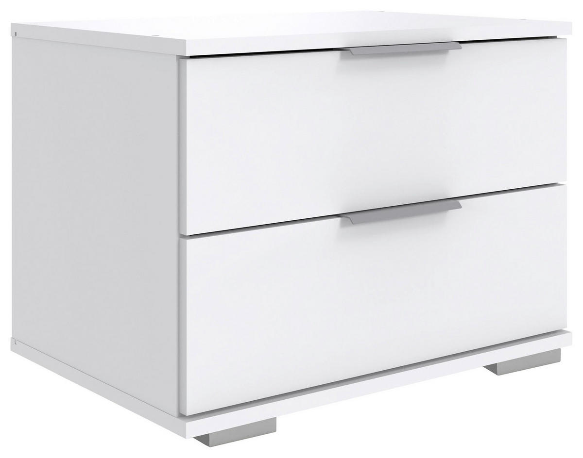 Sängbordet "Easy Plus A" kompletterar din sovrumsinredning med extra mycket praktisk förvaring. Ytan visar sig i snyggt vitt. Sängbordet är försett med 2 lådor som öppnas med korta grepplister i kromad metall. De alufärgade fötterna fullständigar den trendiga designen. Då detta rymliga sängbord står precis bredvid sängen, slipper du gå upp när det är mysigast. Mått B/H/D ca. 52 x 40 x 38 cm.
