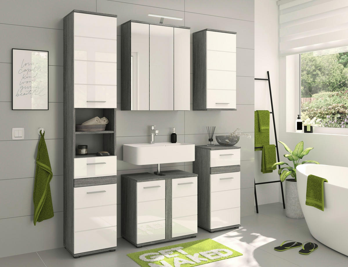 BADRUM 60 cm  - silver/vit högglans, Modern, trämaterial/glas (60cm) - MID.YOU