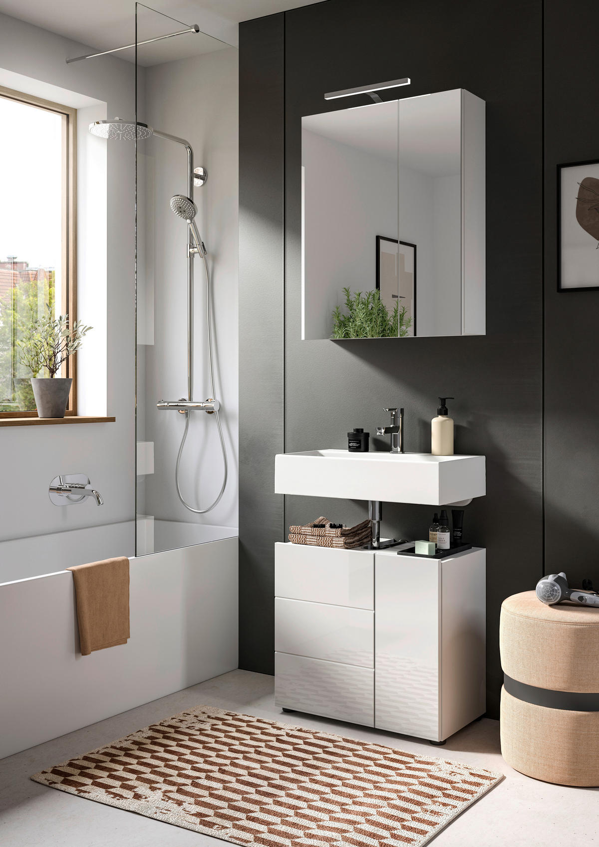 BADRUM 180 cm  - vit högglans/svart, Modern, trämaterial/plast (180cm) - MID.YOU