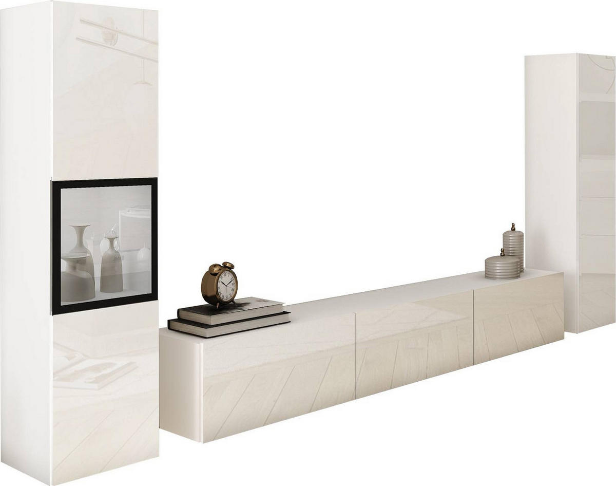 HYLLKOMBINATION 3 delar  i vit, vit högglans  240/130/31 cm  - vit/vit högglans, Design, trämaterial/glas (240/130/31cm) - P & B