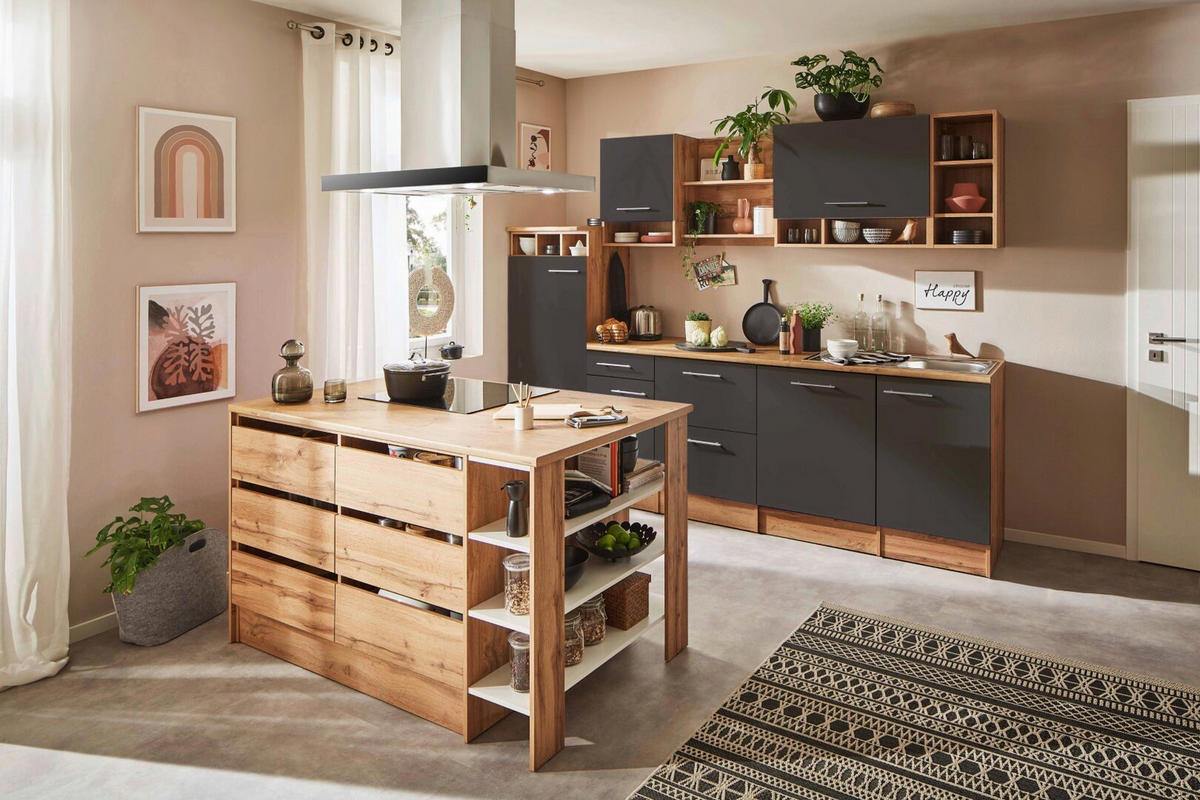 MODULKÖK 280-150 cm   i grå  - aluminiumfärg/vildek, Design, metall/trämaterial (280-150cm) - Respekta