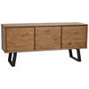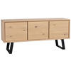 Detta eleganta sideboard "Melville" från ROWICO är tillverkat av ljus ekfärg i massivt trä och underredet är gjort av svart metall. Bakom tre dörrar finns 3 hyllplan som bjuder på förvaringsutrymme för olika tillhörigheter. Möbeln har ett mått på B/H/D ca. 160 x 73 x 45 cm.
