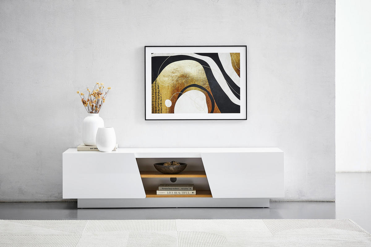 TV-BÄNK  i 179/66/44 cm  - vit/kromfärg, Modern (179/66/44cm) - Carryhome